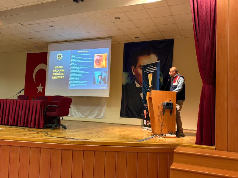Öğrenciler, madde bağımlılığına karşı korunma yolları, erken uyarı işaretleri ve toplumsal dayanışmanın önemi hakkında bilgilendirildi.