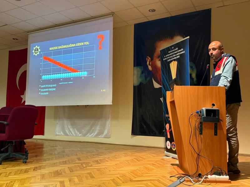 Eğitimde, İl Jandarma Komutanlığı Narkotik Suçlarla Mücadele Şube Müdürlüğü yetkilileri tarafından “En İyi Narkotik Polisi Anne/Narkorehber” projesi kapsamında sunum gerçekleştirildi. Sunumda, madde bağımlılığıyla mücadelede toplumun her kesimine düşen sorumluluklar, ailelerin farkındalık düzeyinin artırılması ve gençlerin bilinçlendirilmesine yönelik uygulamalara değinildi. Etkinlikte ayrıca, uyuşturucu madde kullanımının bireysel, sosyal ve hukuki sonuçları ile bağımlılıkla mücadelede kamu kurumları ve sivil toplum kuruluşlarının iş birliği konuları ele alındı.