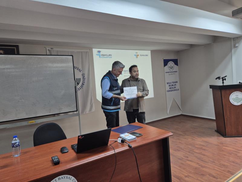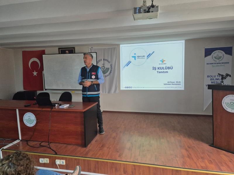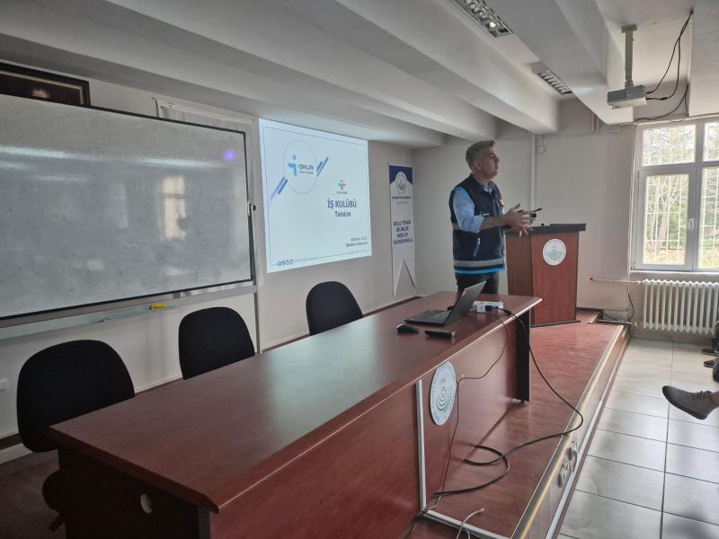 Bolu Abant İzzet Baysal Üniversitesi Bolu Teknik Bilimler Meslek Yüksekokulu OSB Kampüsünde, İŞKUR Bolu İl Müdürlüğü iş birliği ile “İŞ Kulübü Tanıtım Etkinliği” düzenlendi. Etkinlik, İŞKUR İstihdam Danışmanı Ali İhsan KILIÇ tarafından gerçekleştirildi.