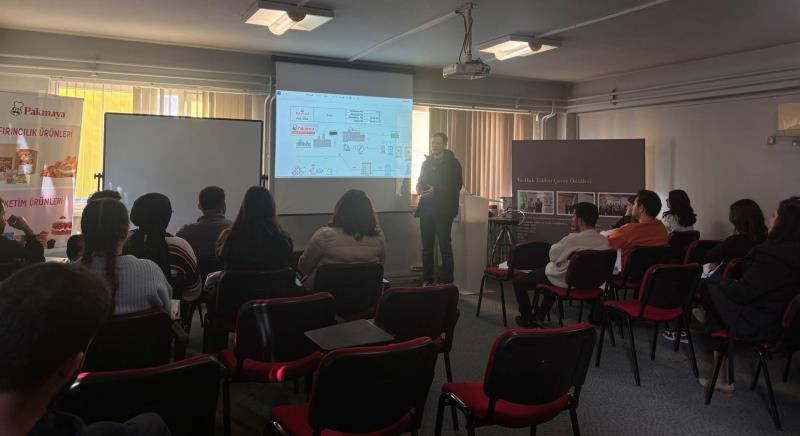 Teknik gezi kapsamında, Kalite Güvence Sorumlusu Utku SARI Pakmaya firması hakkında genel bir bilgilendirme yaptı; ardından yaş maya, deaktive maya ve instant maya üretimine ilişkin teknik bilgileri paylaştı. Daha sonra üretim alanında gerçekleştirilen saha gezisi sırasında, maya üretim süreci Üretim Müdürü Recep ÖZMETİN tarafından öğrencilere anlatıldı.