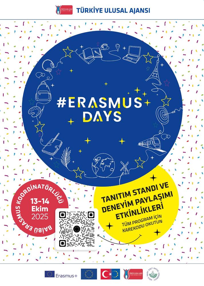 13-14 Ekim 2025 tarihlerinde gerçekleştirilecek olan "Erasmus Günleri" etkinliklerimize tüm akademik personel ve öğrencilerimiz davetlidir.