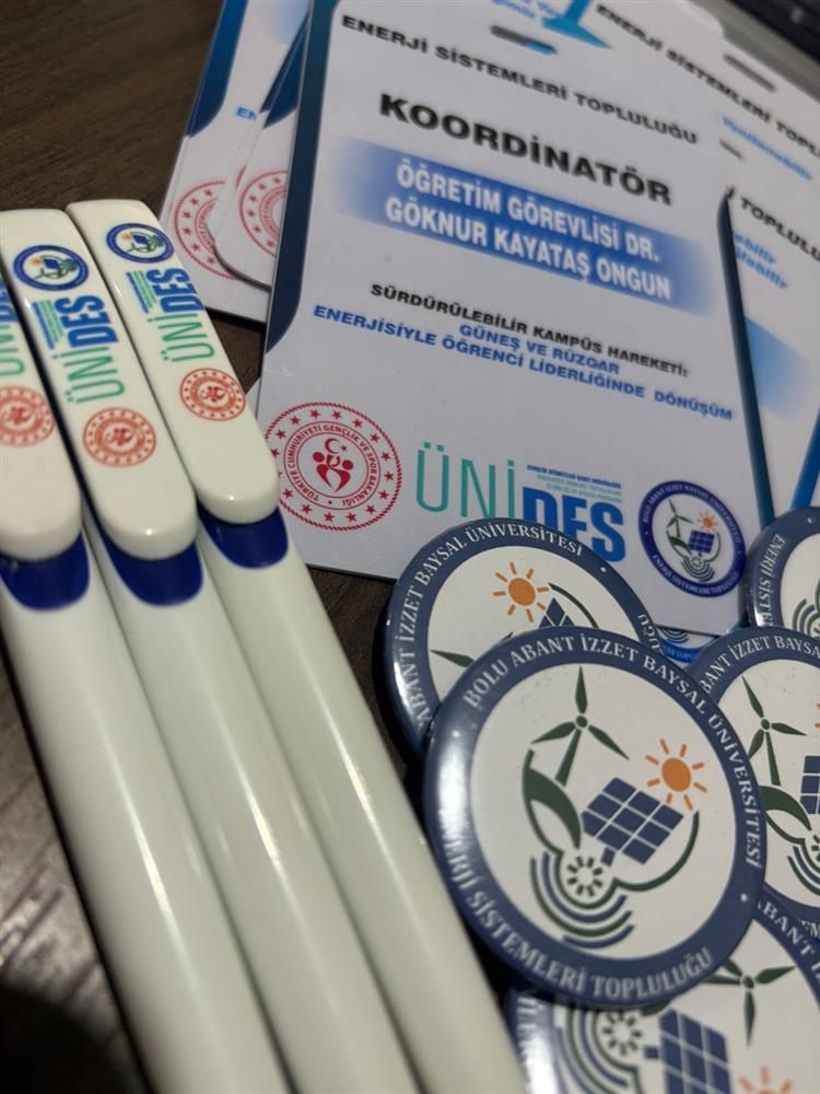Danışman hocamız Öğr. Gör. Dr. Göknur KAYATAŞ ONGUN rehberliğinde yürütülen “Sürdürülebilir Kampüs Hareketi: Güneş ve Rüzgâr Enerjisiyle Öğrenci Liderliğinde Dönüşüm” adlı projemiz, 2024–2025 dönemi ÜNİDES Programı kapsamında kabul edilmiştir. Bu başarı, öğrencilerimizin çevreye duyarlı, yenilikçi ve sürdürülebilir çözümler geliştirme konusundaki kararlılığının bir göstergesidir.
